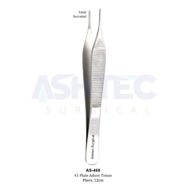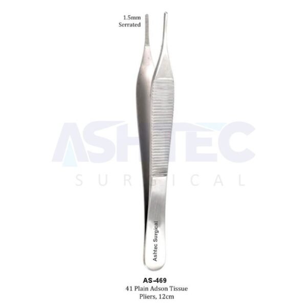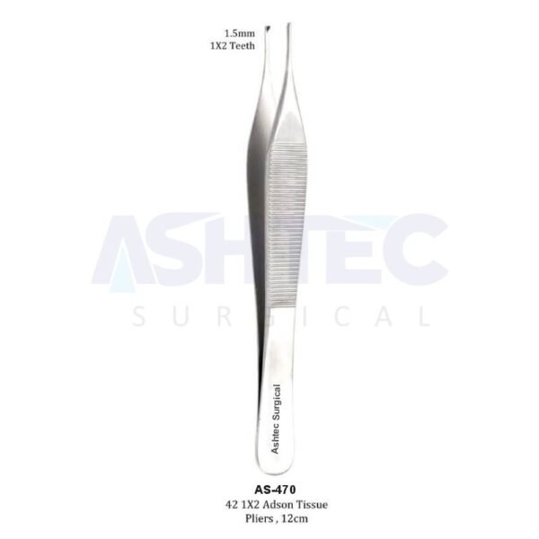 Adson Tissue Forceps, 1.5mm 1×2 Teeth Serrated Tip, 12cm