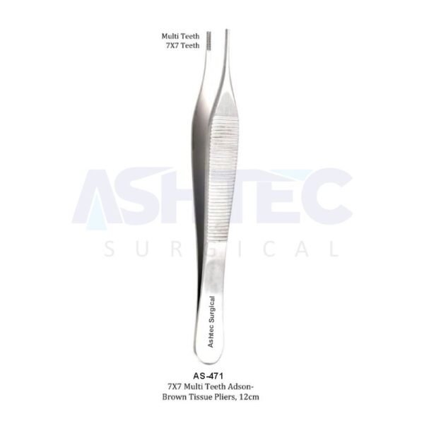 Adson-Brown Tissue Forceps, 7×7 Teeth, Serrated Tip, 12cm