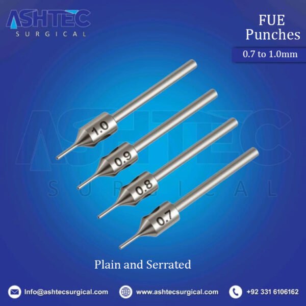 FUE Punches Plain & Serrated , Diameter 0.7 to 1.1mm, Tip Size (3.5 to 6mm)