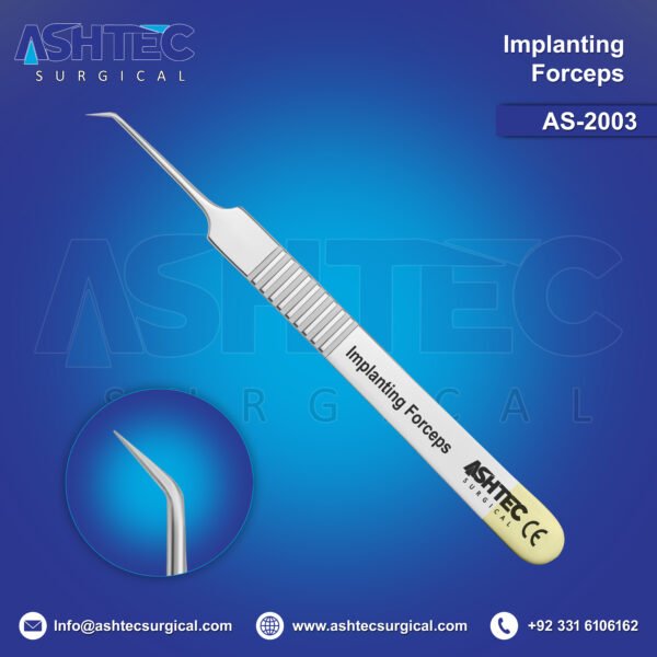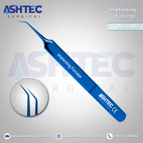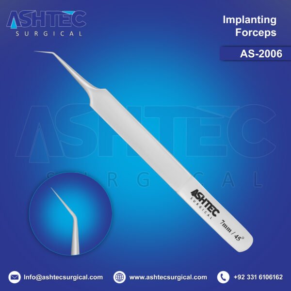 Hair Implanting Forceps, 45° Angled with 7mm Tip, 11cm, Sharp Tip, Blue Color Coated, Finish (AS-2002)