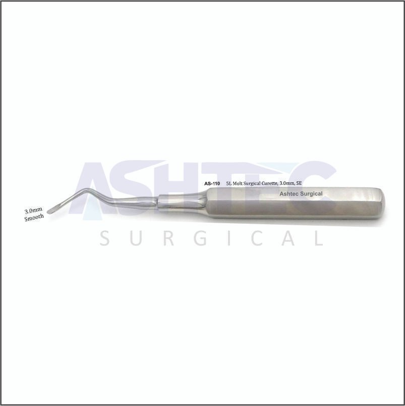 5L Molt Surgical Curette, 3.0mm Smooth End, Single End, Left Angled