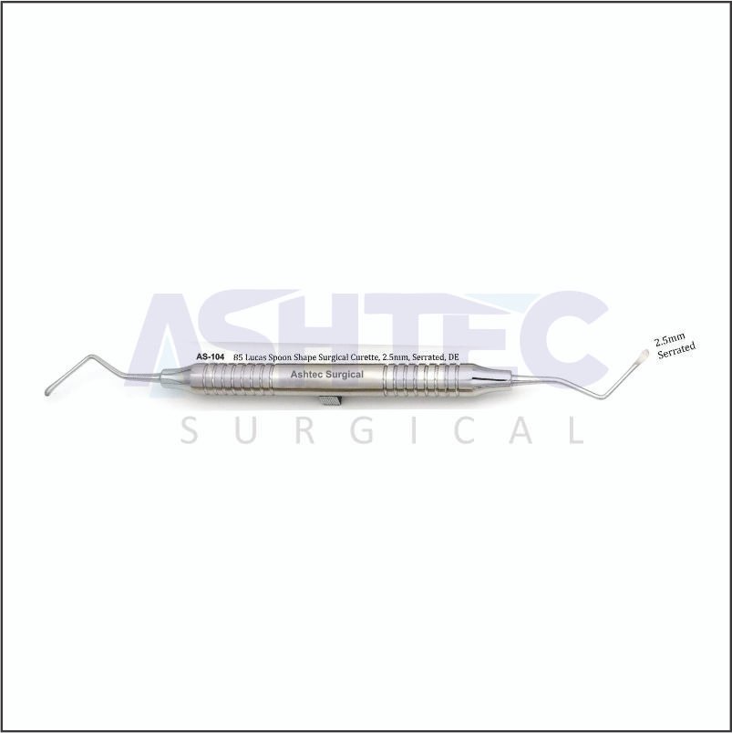 85 Lucas Spoon Shape Surgical Curette, 2.5mm Serrated Ends, Double Ended