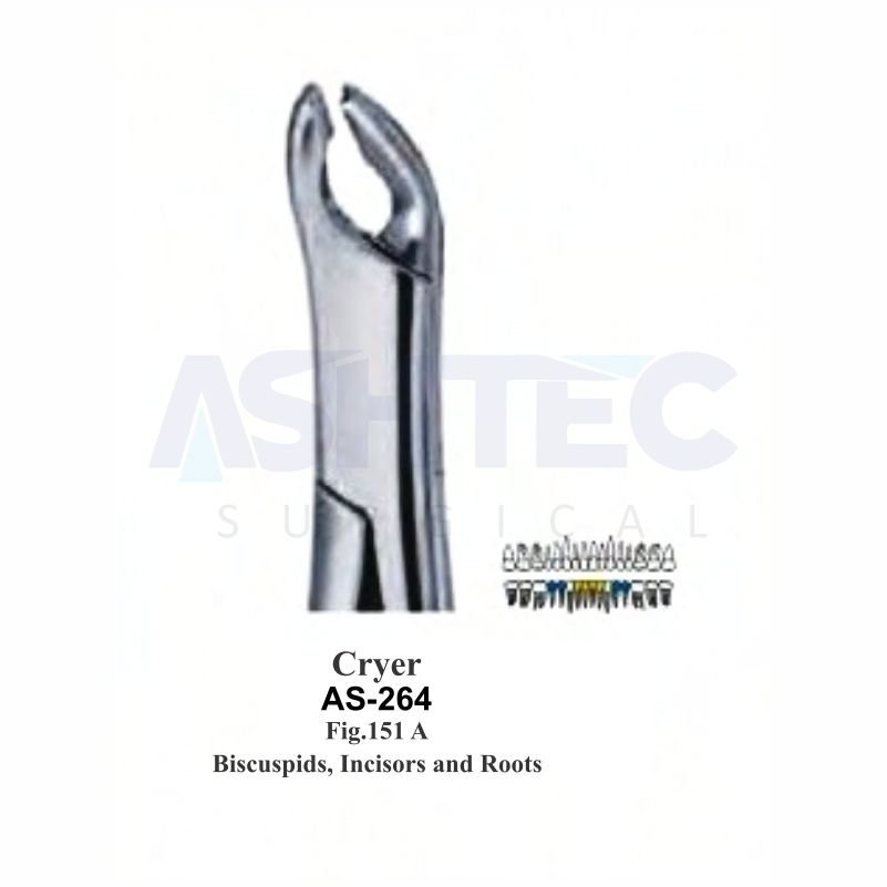 The Cryer American Pattern Extracting Forceps, Fig. 151A, is specifically designed for precise extraction of lower incisors and premolars. Its contoured beaks provide a secure, slip-resistant grip, allowing for controlled and atraumatic extractions, ensuring minimal trauma to surrounding tissues.