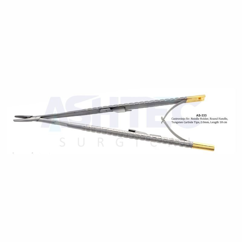 Castroviejo Needle Holder, Round Handle, T/C, 2mm Tip, 18cm, Straight