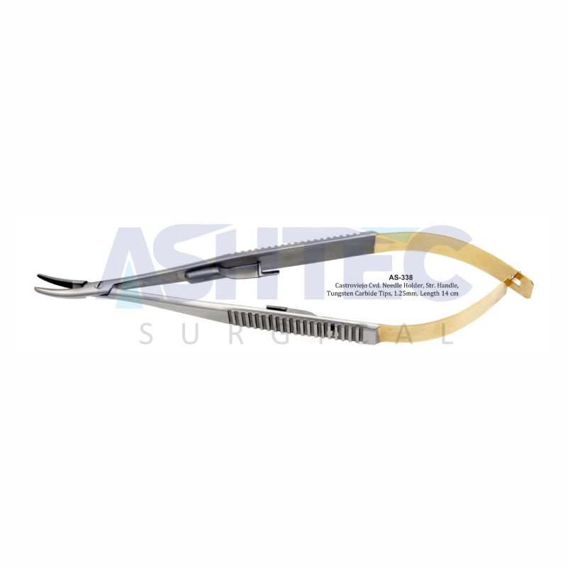 Castroviejo Needle Holder, Round Handle, T/C, 1.25mm Tip, 14cm, Curved