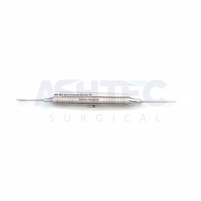 The Allen Periosteal Elevator, 3mm/2.5mm, Double Ended is a precision surgical instrument designed for gentle and controlled periosteal and soft tissue elevation. Its double-ended design features two tip sizes, 3mm and 2.5mm, providing versatility for various surgical needs.
