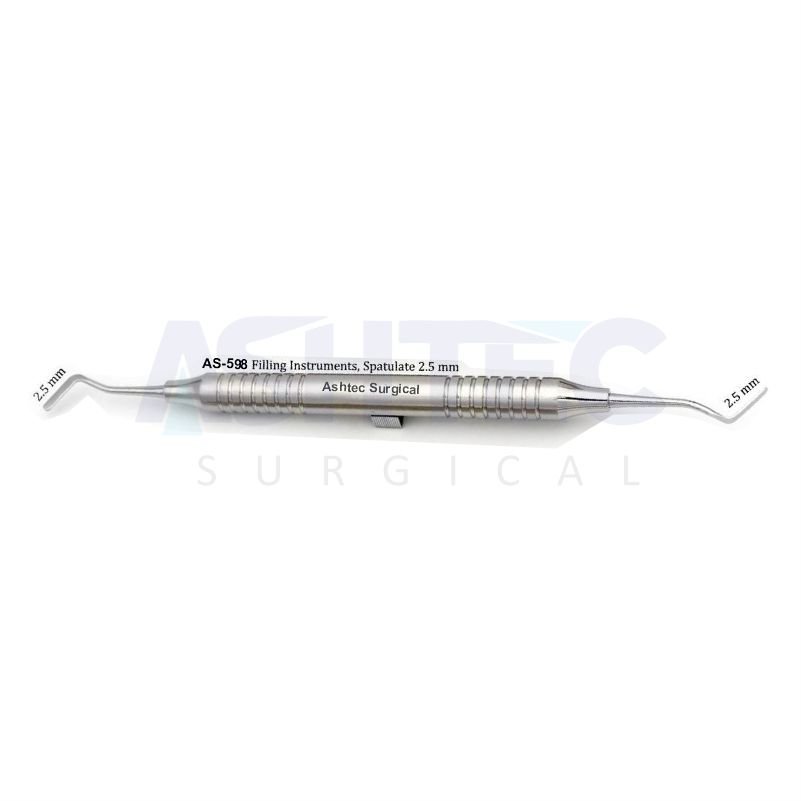 The Filling Spatula, 2.5mm, Double Ended (DE) is a finely crafted dental instrument used for mixing, carrying, and shaping dental restorative materials with superior accuracy. Designed for ease of handling and precision, it ensures smooth manipulation of composites, cements, and other filling materials during clinical or laboratory procedures.