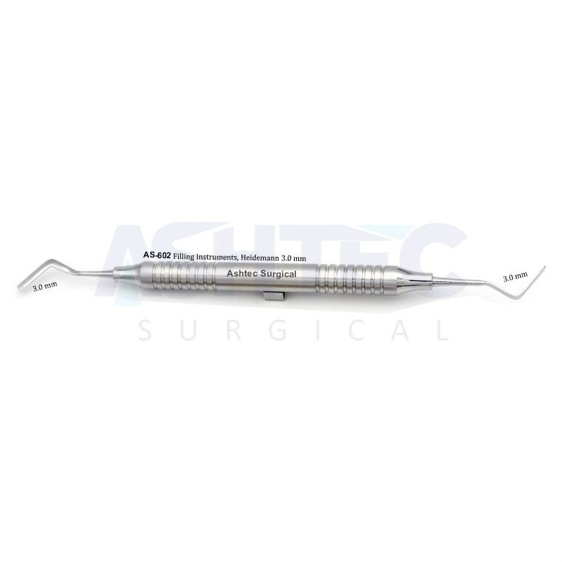 The Heidemann Filling Instrument, 3.0mm, Double Ended (DE) is a precision-engineered dental instrument used for shaping, contouring, and adapting composite or restorative materials during dental procedures. Its dual-ended design and smooth working tips make it ideal for achieving precise marginal adaptation and smooth surface finishes in restorative dentistry.