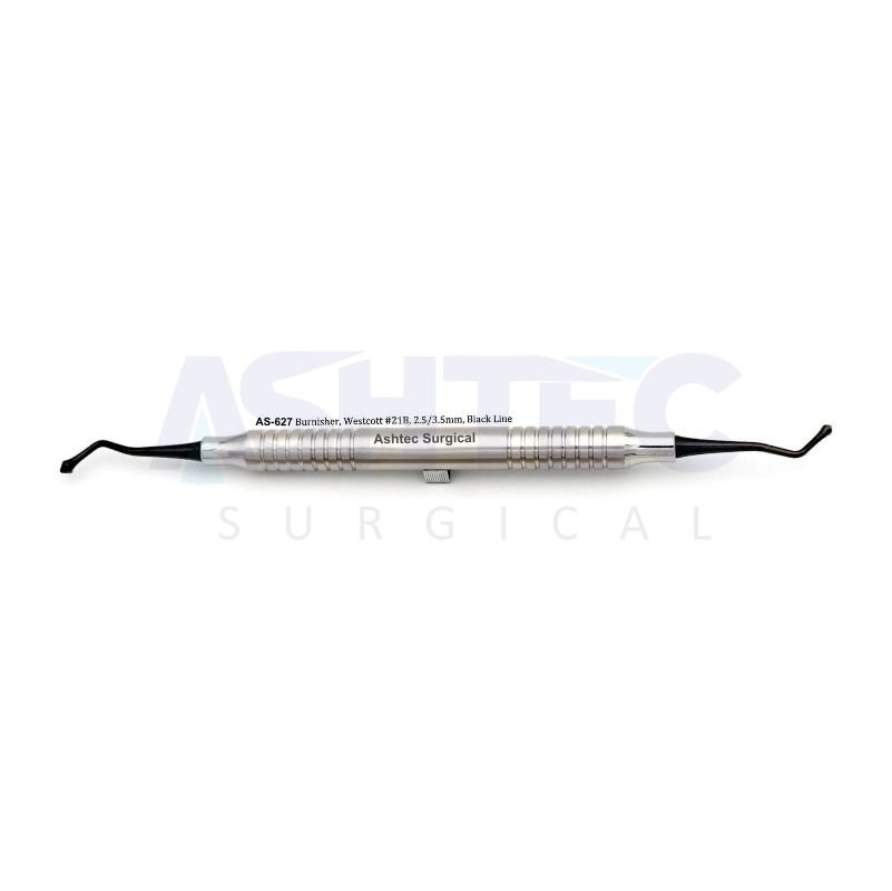 The Westcott Burnisher #21B (Double Ended) – Black Line is a premium surgical instrument designed for precision finishing, smoothing, and contouring tasks during orthopedic and dental restorative procedures. Manufactured from high-quality stainless steel with a non-reflective black coating, it provides superior durability, corrosion resistance, and reduced glare under operating lights for enhanced visibility.