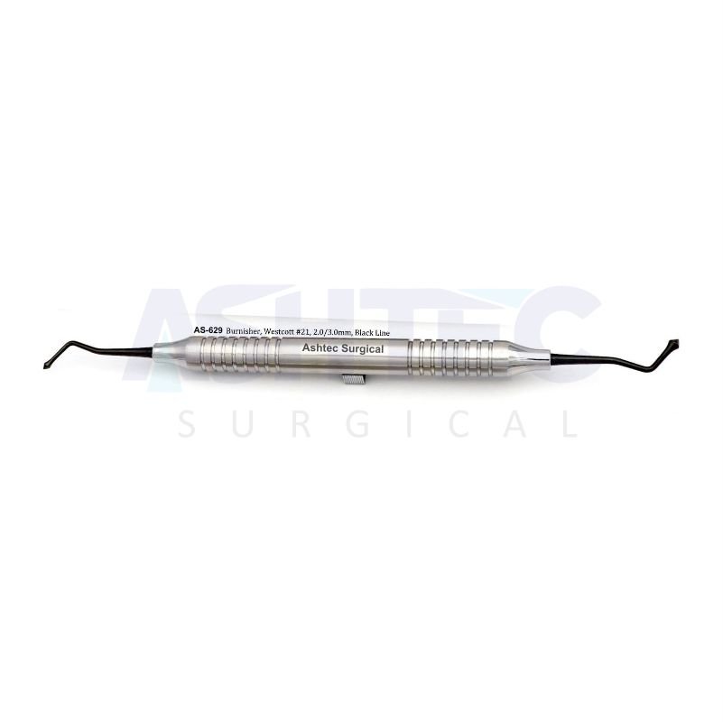 The Westcott Burnisher #21 (Double Ended) – Black Line is a high-quality surgical instrument designed for precision burnishing, finishing, and contouring tasks during orthopedic and dental restorative procedures. Made from premium stainless steel with a non-reflective black coating, it ensures excellent durability, corrosion resistance, and reduced glare for superior visibility under surgical lighting.