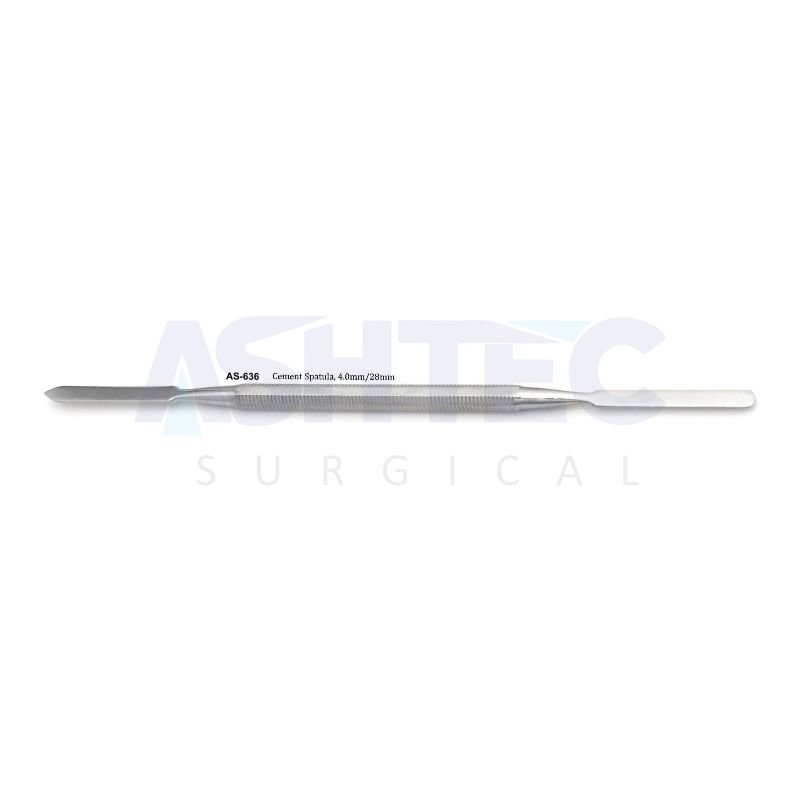 The Cement Spatula (4.0mm/28mm) is a precision-engineered surgical instrument designed for efficient mixing, spreading, and application of cements, composites, and restorative materials in orthopedic and dental procedures. Manufactured from premium-grade stainless steel, it ensures exceptional strength, corrosion resistance, and long-lasting performance under repeated sterilization.