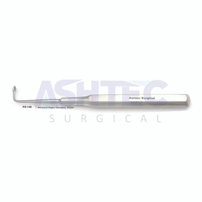 The 7 Bernard Root Tip Elevator, Right 4mm, 15.5cm, Slim Handle is a precision dental extraction instrument designed for the atraumatic removal of root tips and tooth fragments from the right side. Its 4mm right-angled tip provides excellent access and control, especially in confined or posterior areas of the mouth.