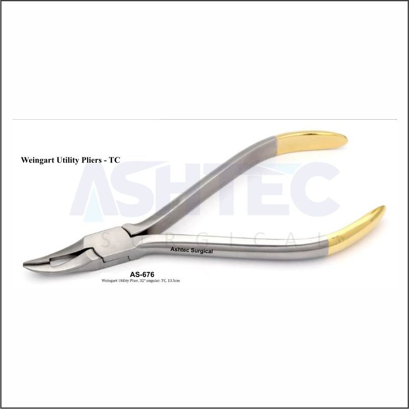 The Weingart Utility Plier (Tungsten Carbide Inserted, 32° Tapered Beak, 13.5cm) is a premium-quality orthodontic instrument designed for holding, placing, and removing archwires and auxiliary components with precision and control. Made from high-grade surgical stainless steel, this plier ensures long-lasting performance, corrosion resistance, and dependable grip during clinical procedures.
