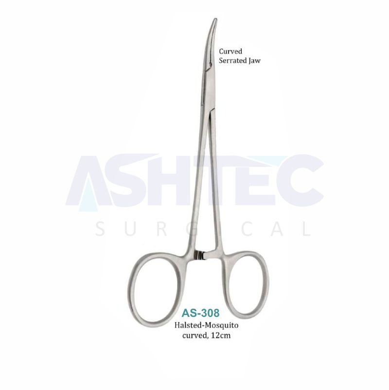 The Halsted-Mosquito Forceps, Standard Curved (12.5cm) are designed for precise clamping of small blood vessels during surgical procedures. Their fine curved jaws allow excellent control and visibility in confined areas.