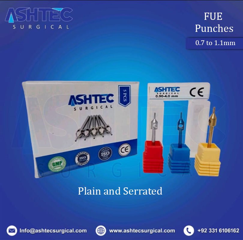 FUE Punches Plain & Serrated , Diameter 0.7 to 1.1mm, Tip Size (3.5 to 6mm)