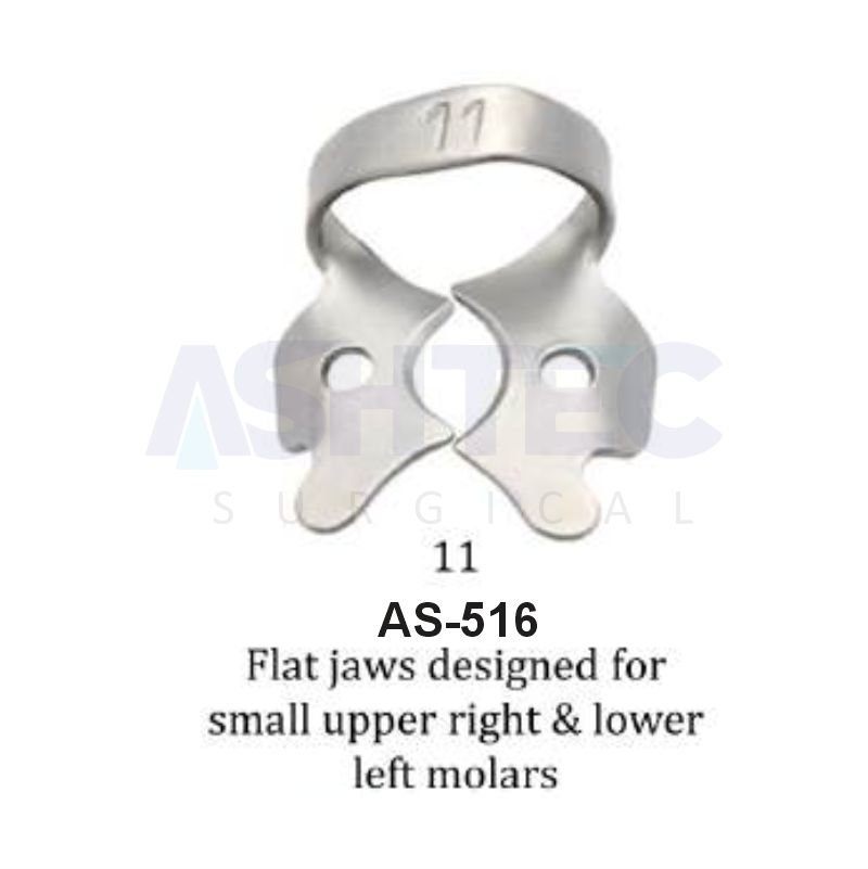The Rubber Dam Clamp Molars #11 is a high-precision dental instrument specially designed for secure placement on molar teeth during isolation procedures. Manufactured from premium stainless steel, this clamp provides a firm grip, excellent stability, and long-lasting corrosion resistance — ensuring reliable performance in every dental practice.