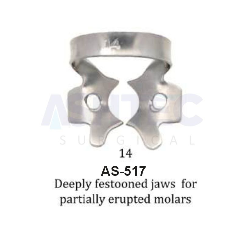 The Rubber Dam Clamp Molars #14 is a precision-crafted dental isolation instrument designed for secure and stable placement on fully erupted molar teeth. Made from high-grade stainless steel, this clamp offers superior grip, excellent durability, and complete corrosion resistance, ensuring consistent performance in restorative and endodontic procedures.