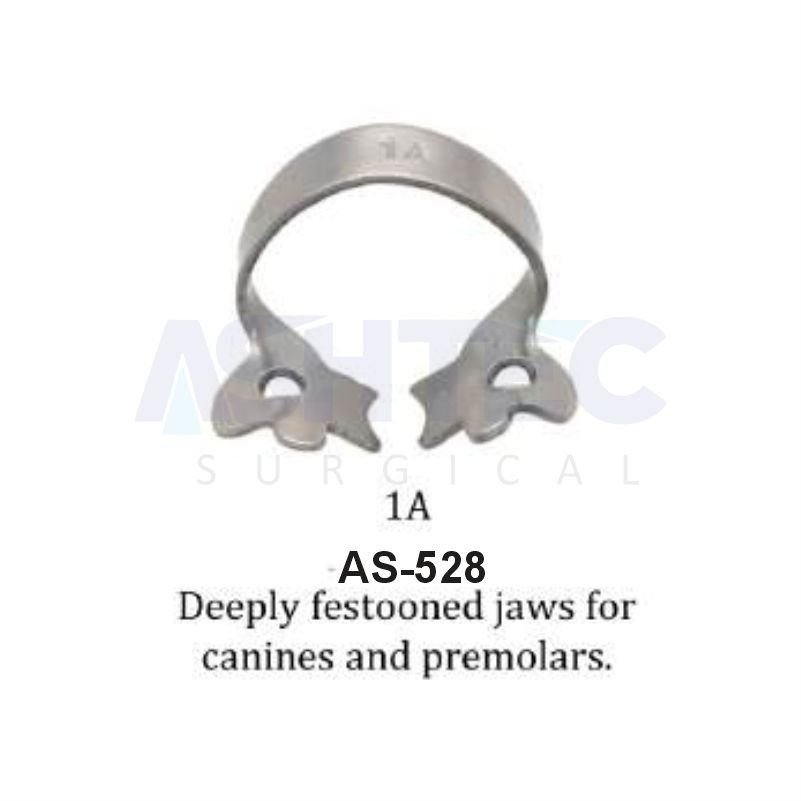 The Rubber Dam Clamp Premolars #1A is a precision-engineered dental clamp designed for secure and stable isolation of upper and lower premolars. Made from premium surgical-grade stainless steel, this clamp ensures excellent grip, superior corrosion resistance, and long-lasting durability — ideal for use in restorative and endodontic procedures.