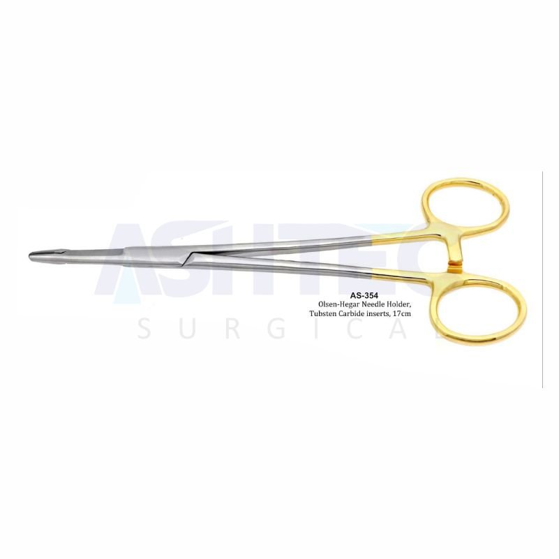 The Olsen-Hegar Needle Holder, T/C, 17cm is a versatile surgical instrument combining the functionality of a needle holder and surgical scissors in one tool. Designed for precision and efficiency, it allows surgeons to suture and cut sutures without changing instruments.