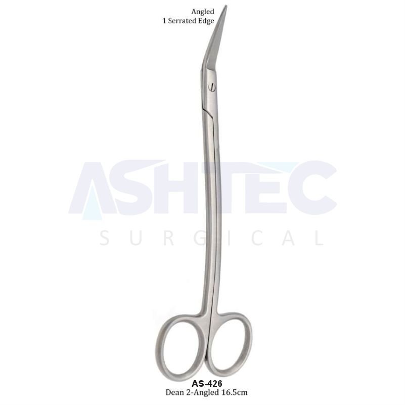 The Dean Dissecting Scissors, 16.5cm, Angled, 1 Serrated Blade, 1 Ring GP offer superior precision, durability, and ergonomic control. Their angled design allows for improved maneuverability and visibility, while the serrated blade ensures firm tissue handling — making them an essential tool for surgical professionals who value performance and reliability.
