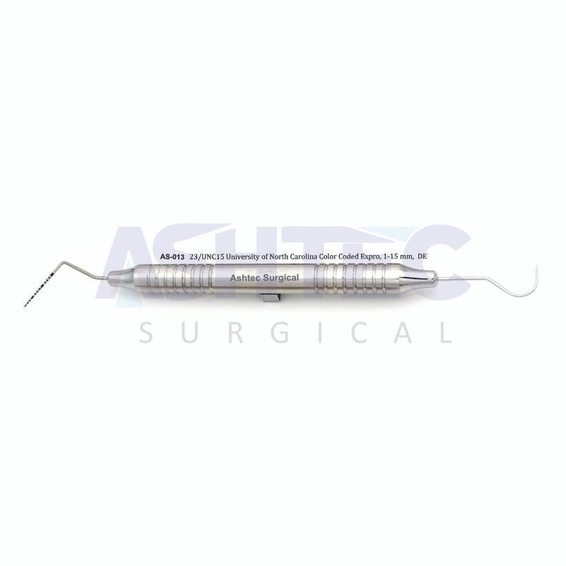 The UNC13 University of North Carolina Expro (1–15 mm) is a premium double-ended dental instrument designed for precise periodontal and diagnostic use. Combining a dental explorer and a periodontal probe, it offers exceptional accuracy, comfort, and durability—ideal for dental professionals who demand reliable performance.