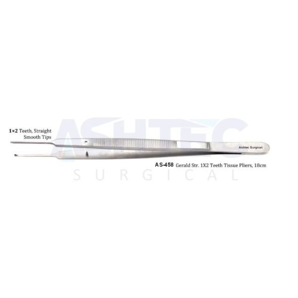 Gerald Tissue Plier, 1×2 Teeth, Smooth Tip, 18cm, Straight