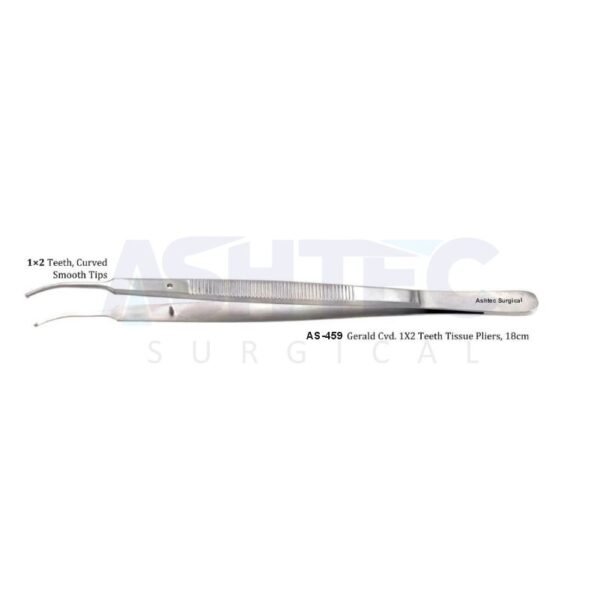 Gerald Tissue Plier, 1×2 Teeth, Smooth Tip, 18cm, Curved