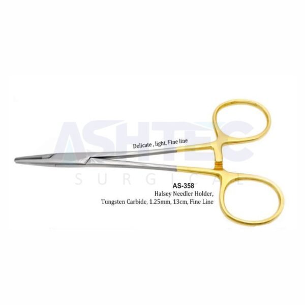 Halsey Needle Holder, T/C, 1.25mm Tip, Delicate, Light, Fine Line, 13cm