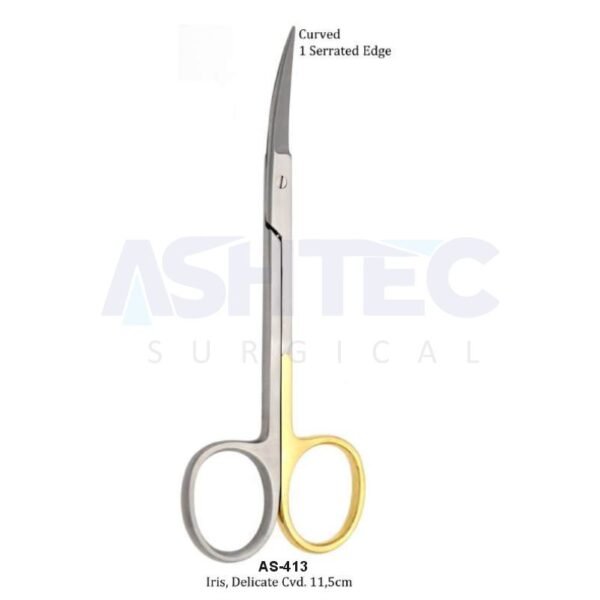 Iris Scissors, Delicate, 11.5cm, Curved, 1 Serrated Blade, 1 Ring GP