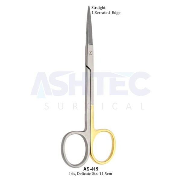 Iris Scissors, Delicate, 11.5cm, Straight, 1 Serrated Blade, 1 Ring GP