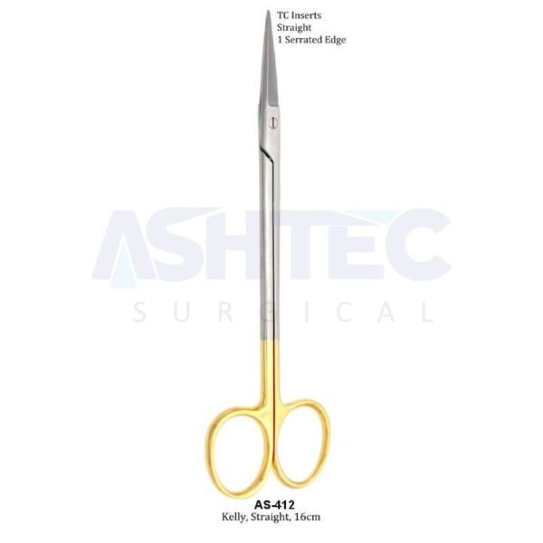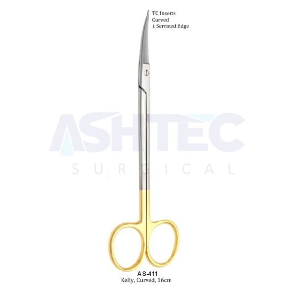 Kelly Scissors, T/C, 16cm, Curved, 1 Serrated Blade