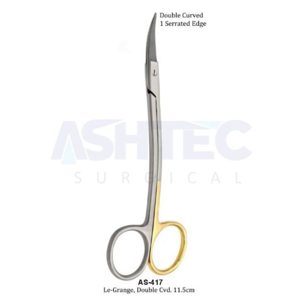La Grange Scissors, 11.5cm, Double Curved, 1 Serrated Blade, 1 Ring GP